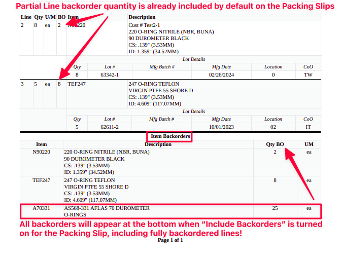 - Option to Show All Backorders on Packing Slips: A setting was added to Packing Slip Templates allowing users to show all Backorders at the bottom of the Packing Slip.