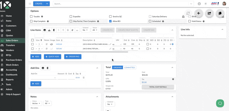 Descriptionof attachments cleared itself when copying from one entity to another, which was primarily impacting copying attachments from Quotes to Sales Orders (converting Quotes). - Various Minor Fixes: Updated PO Open Quantities on the Inventory Table calculation, the filename not saving to attachments on Lots, Combo label options not fully respecting selection order, Order Pad navigation issues in Draft mode, Vendor country of origin overriding the item level value when receiving, XREFs missing when creating an RFQ from the Purchase Tool, and ensuring deleted XREFs don't appear in the Pricing Rules table for reference.