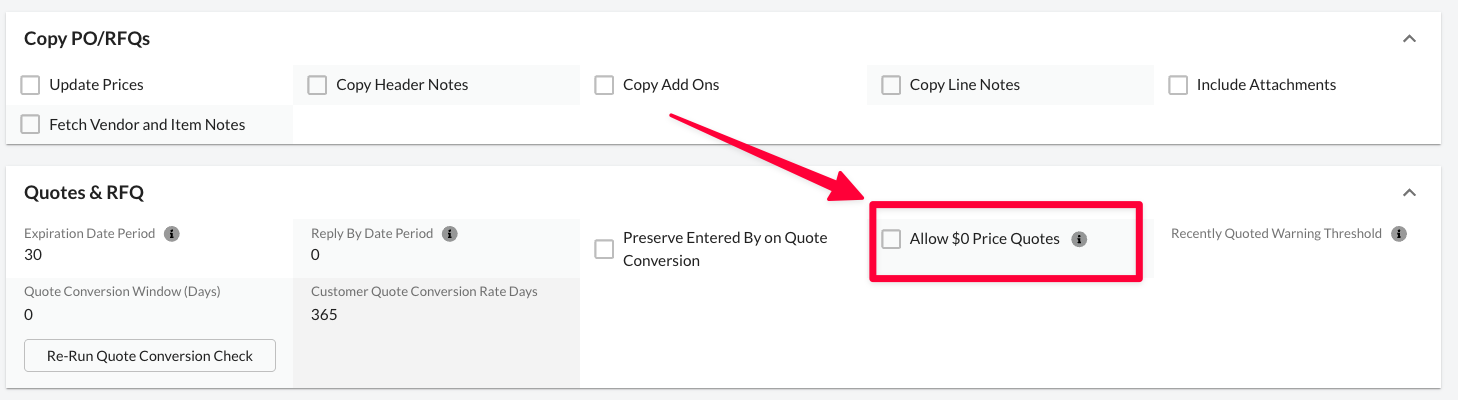 - Setting to Allow Publishing $0 Quotes: An Admin Setting was added to allow publishing of no value, i.e., $0.00, Quotes.