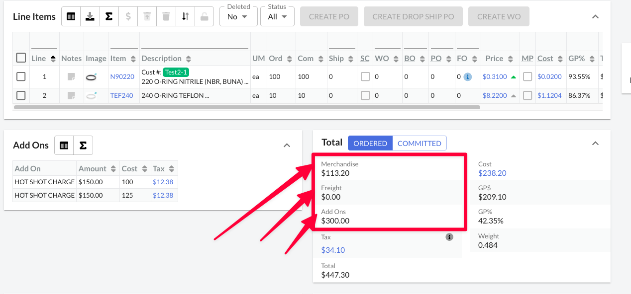 Totalssection on Sales Orders was updated to provide more granular details on Add-Ons vs. Line Items, including Freight details for better visibility.