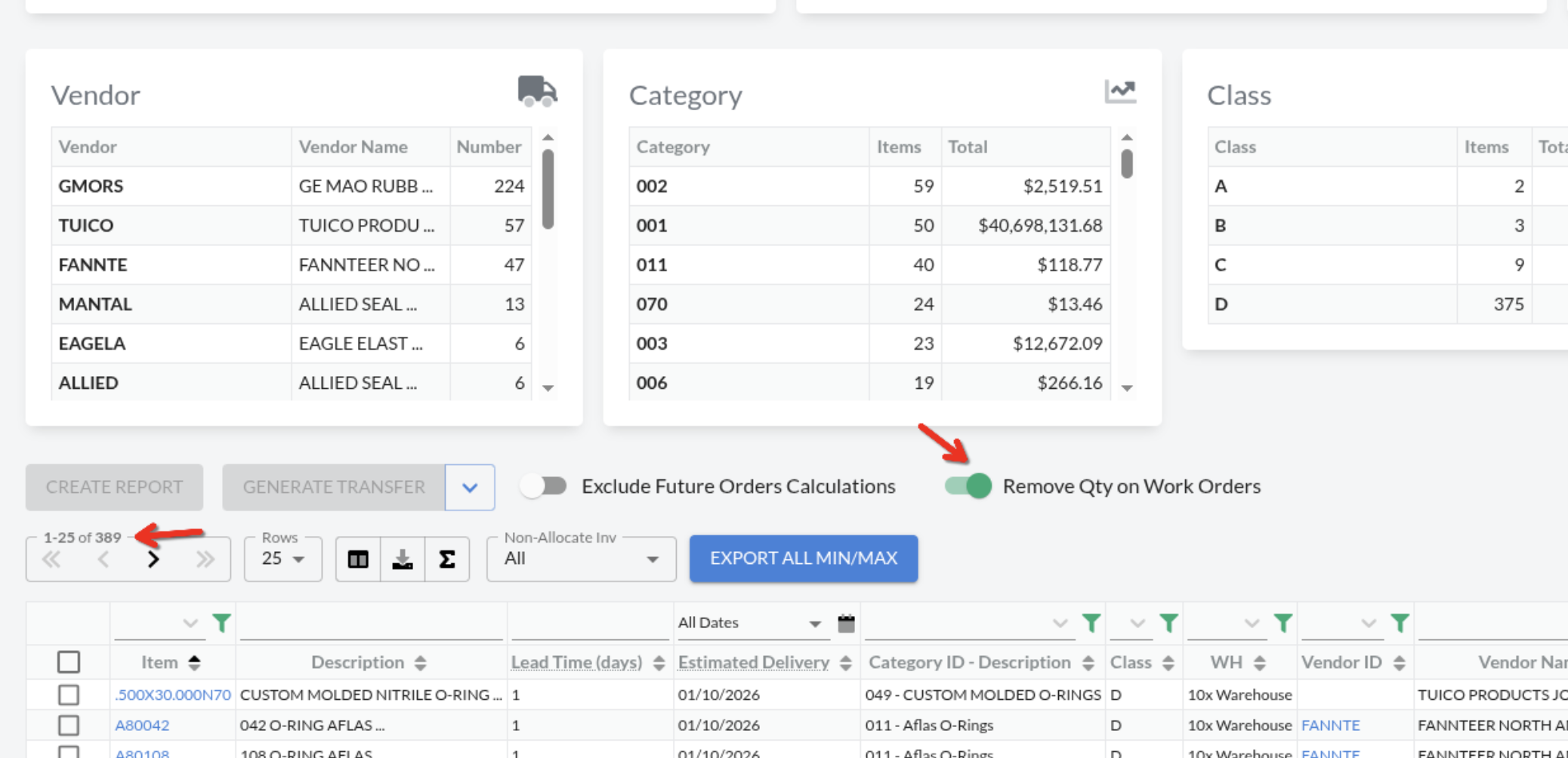 - Component Switch Updated in Purchase Tool: The switch used to view quantities needed on Work Orders has been set to true (on) by default; the naming has been updated, and a tooltip has been added for better reference when purchasing.